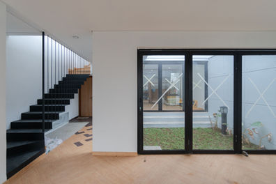 The use of an open floor plan enhances the sense of openness and hospitality for visitors. This layout not only promotes a modern feel but also integrates seamlessly with simple yet stylish furniture choices. The overall effect is a space that feels contemporary and accessible to all.